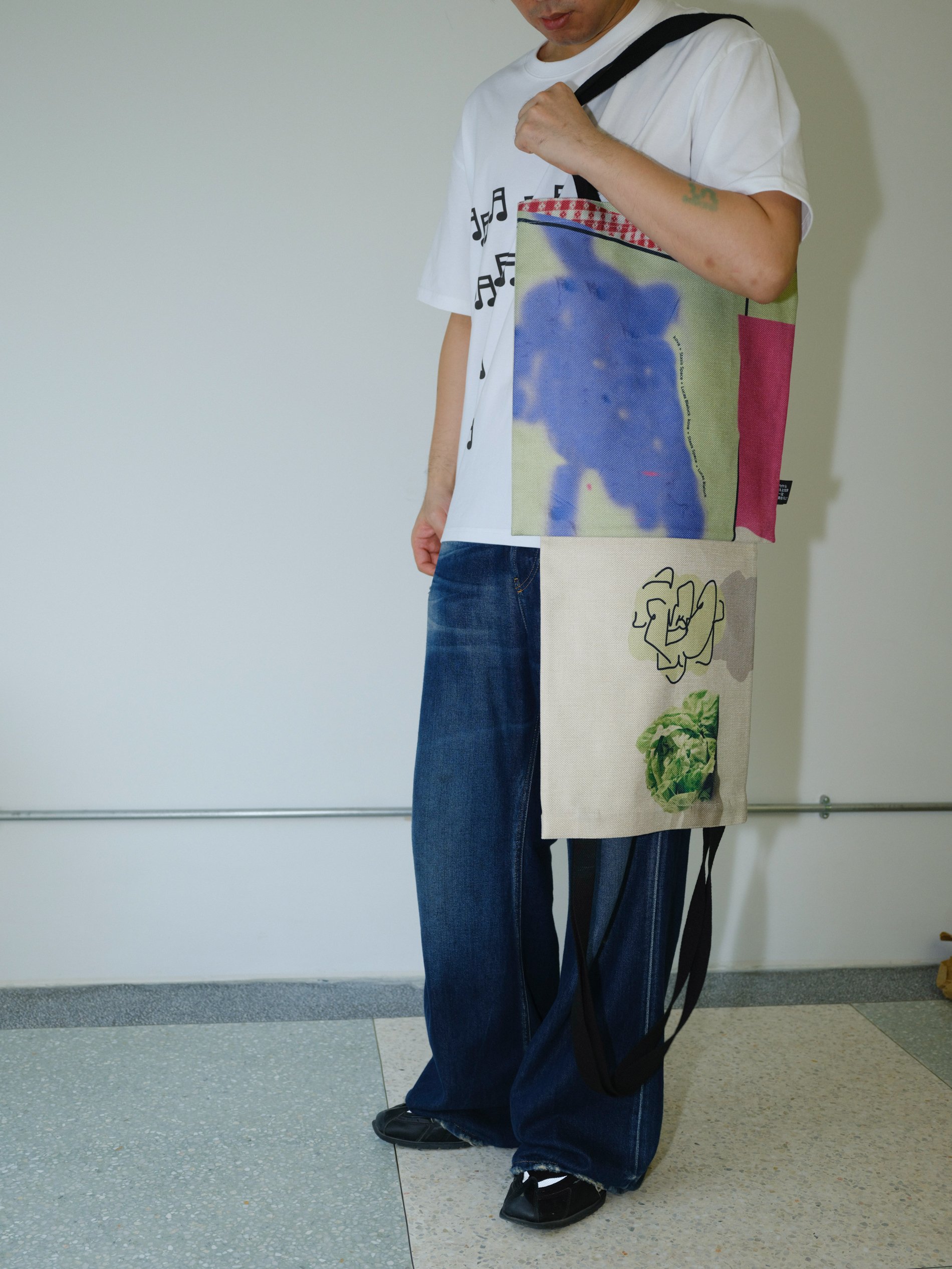 This piece features two interconnected tote sizes that adapt to various usage scenarios. By ingeniously "appropriating" the artworks and creative techniques of artist Lucas Blalock, this Sibling Tote Bag 2-in-1 allows users to switch between two visual narratives through a simple reversible design, creating an interactive dialogue with the artwork itself.